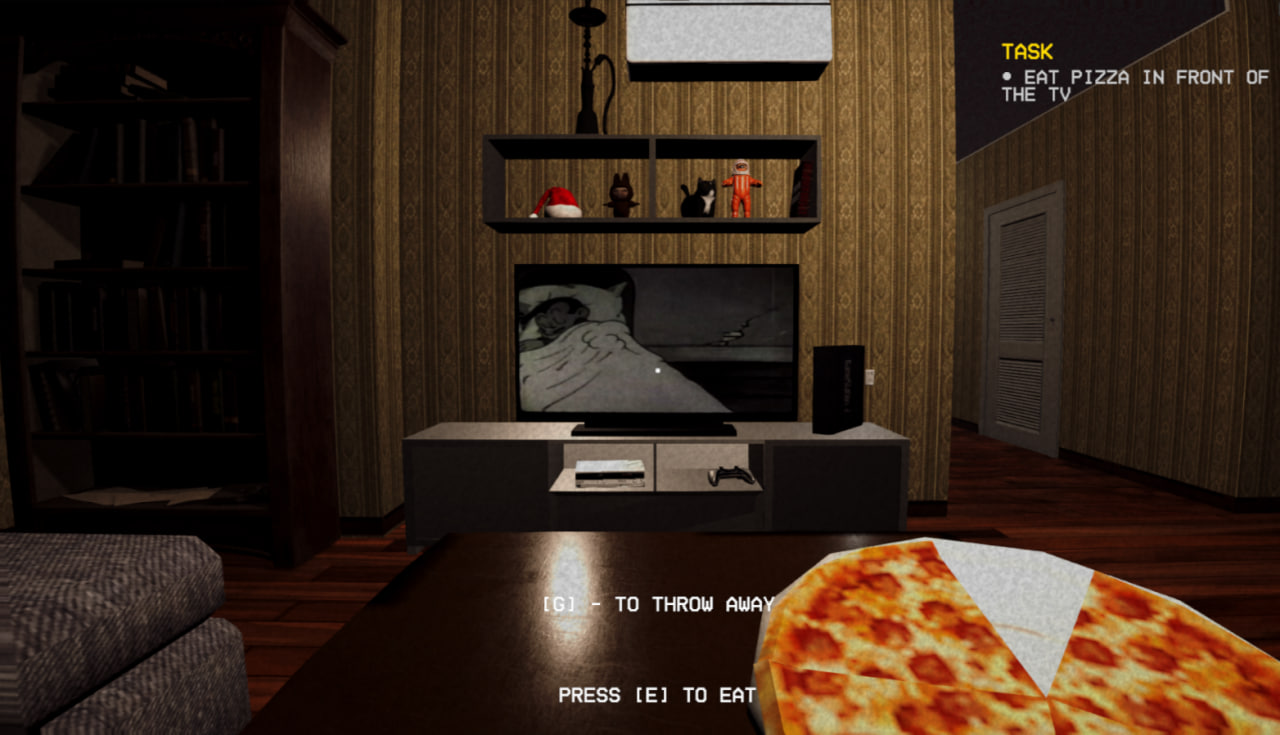 You have a strange dream in which the rooms repeat. And something happens in each room. After certain moments, the player wakes up in their bed and realizes that it was just a dream.